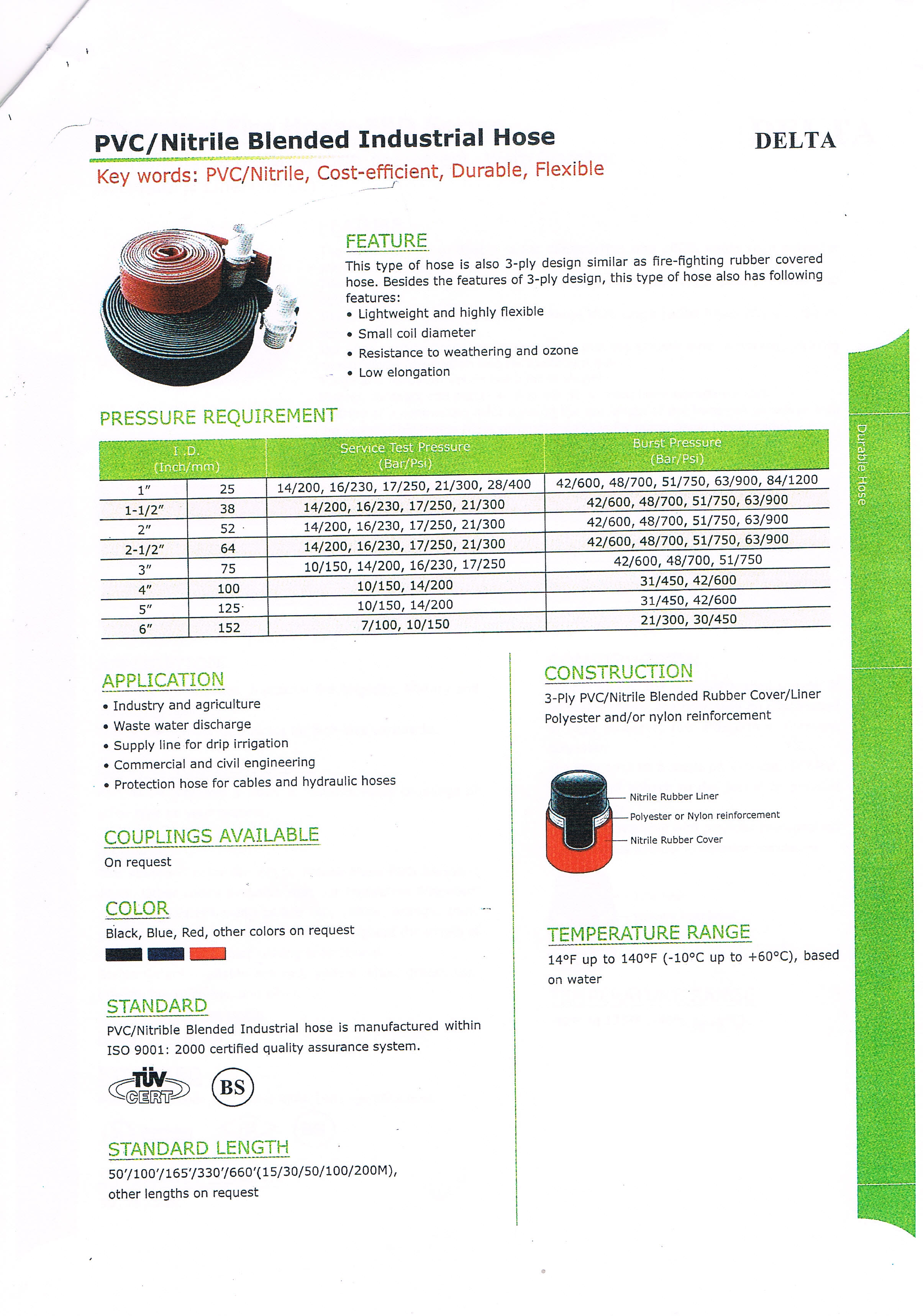 สายดับเพลิง ยางสังเคราะห์ DELTA PVC Nitrile สีแดง