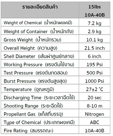 ใช้งานได้ง่ายและปลอดภัย บรรจุด้วยผงเคมี ABC หรือ Mono Ammonium Phosphate