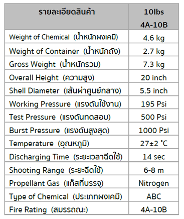 ใช้งานได้ง่ายและปลอดภัย บรรจุด้วยผงเคมี ABC หรือ Mono Ammonium Phosphate