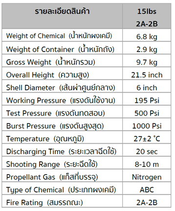 ใช้งานได้ง่ายและปลอดภัย บรรจุด้วยผงเคมี ABC หรือ Mono Ammonium Phosphate
